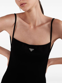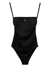 triangle-logo open-back swimsuit Highlights - Black - Interlock weave - Triangle logo - Square neck - Rear tie fastening - Open back - Adjustable spaghetti straps - High cut - Be mindful to try on swimwear over your own garments. Composition Nylon 100%