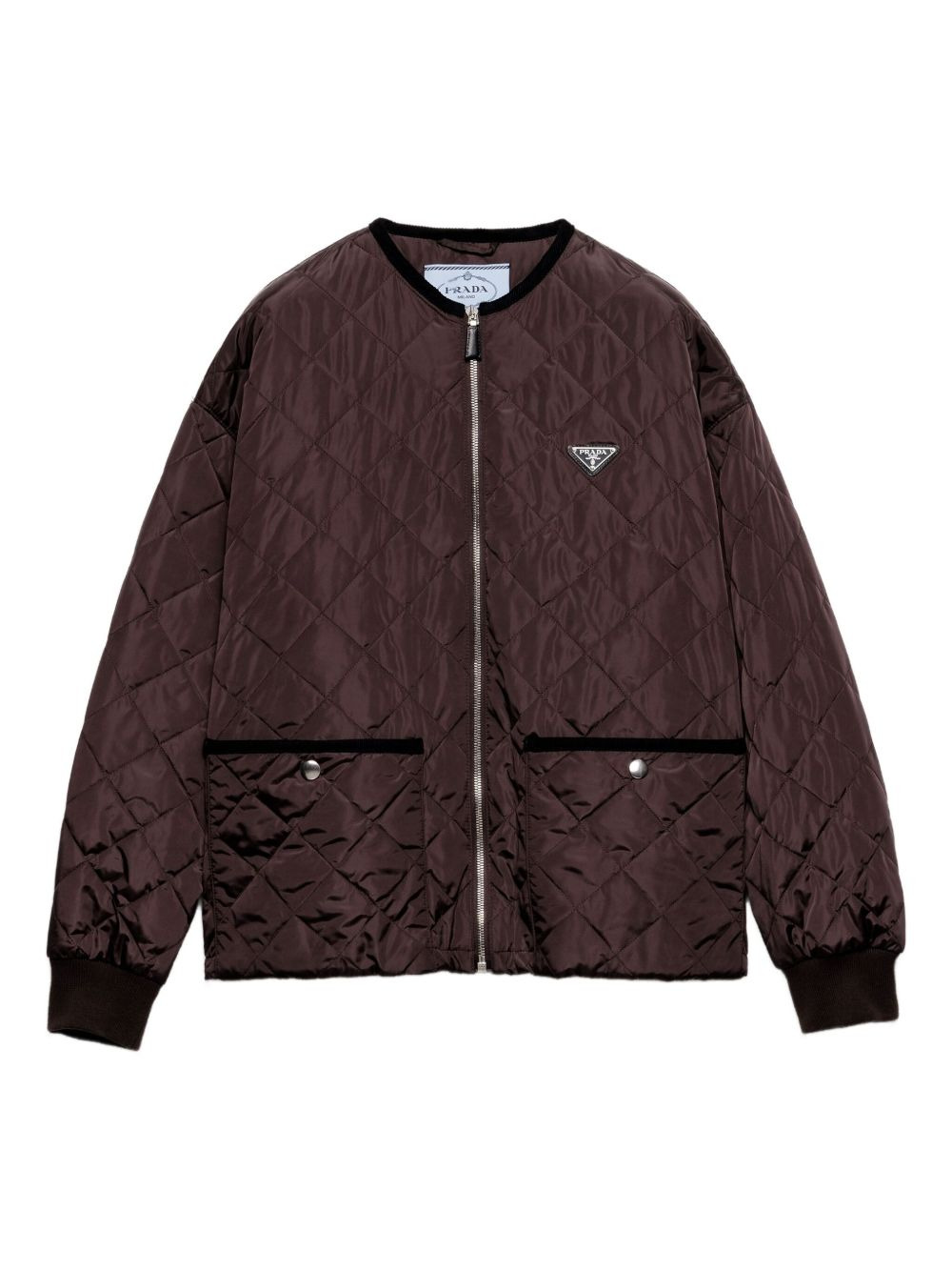 triangle-logo quilted jacket Highlights - Brown - Quilted - Press-stud fastening pockets - Round neck - Front zip closure - Contrasting trim Composition Recycled Polyamide 100% Washing instructions Read Manufacturer Guidelines