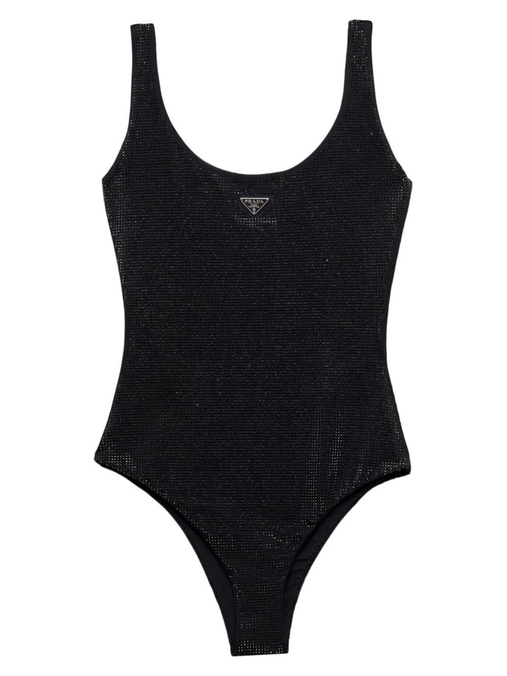 triangle-logo rhinestone-embellished swimsuit Highlights - Black - Jersey texture - Rhinestone embellishment - Triangle logo - Scoop neck - Slip-on style - Scoop back - Thin shoulder straps - Sleeveless - Fitted waistline - High cut - Be mindful to try on swimwear over your own garments. Composition Nylon 100%