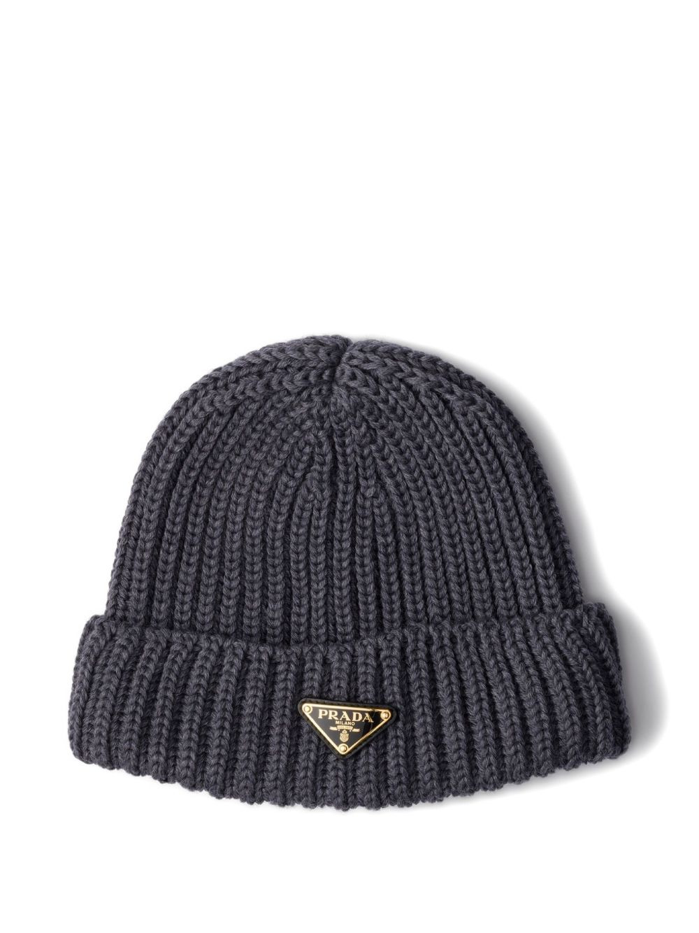 triangle-logo ribbed beanie Highlights - Grey - Ribbed knit - Enamel triangle logo - Wool - Folded brim Composition Wool 100%