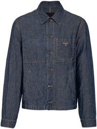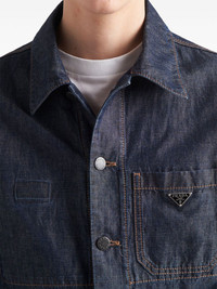 triangle-logo shirt jacket Highlights - Navy blue - Cotton - Chambray - Contrast stitching - Spread collar - Long sleeves - Buttoned cuffs - Chest patch pocket - Enamel triangle logo - Two side welt pockets - Internal logo tag - Internal patch pockets - Straight hem - Front button fastening Composition Cotton 100%