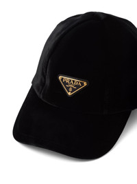 triangle-logo velvet baseball cap Highlights - Black - Cotton - Velvet - Enamel triangle logo - Curved peak - Fabric-covered button at the crown - Round crown - Pull-on style Composition Lining: Cotton 100% Outer: Velvet 100%