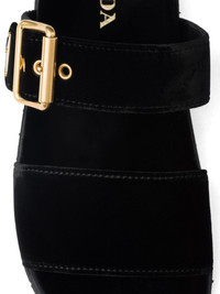 triangle-logo velvet slides Highlights - Black - Velvet - Enamel triangle logo - Round open toe - Side buckle fastening - Branded footbed - Flat rubber sole - Slip-on style Composition Lining: Velvet 100% Sole: Rubber 100% Outer: Velvet 100% SIZE & FIT Measurement HEEL 0.98 in(2.5 cm) Sole height 0.78 in(2 cm)