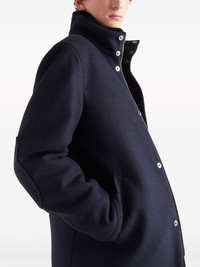 triangle-logo wool-blend jacket Highlights - Navy blue - Virgin wool-cashmere blend - Triangle logo - Stand-up collar - Concealed front press-stud fastening - Concealed front zip fastening - Long sleeves - Slip pockets to the sides - Straight hem Composition Lamb Skin 100%, Virgin Wool 88%, Cashmere 10%, Polyamide 2%