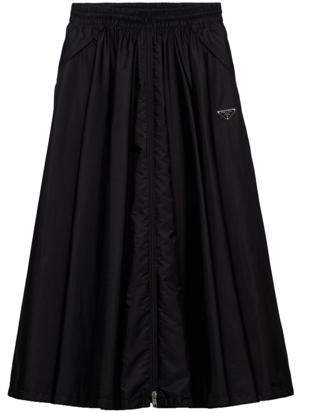 triangle-logo zipped maxi skirt Highlights - Black - Enamel triangle logo - Elasticated drawstring waistband - Front zip fastening - Two side zip-fastening pockets - Long length - Straight hem - Unlined Composition Nylon 100%