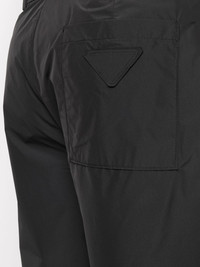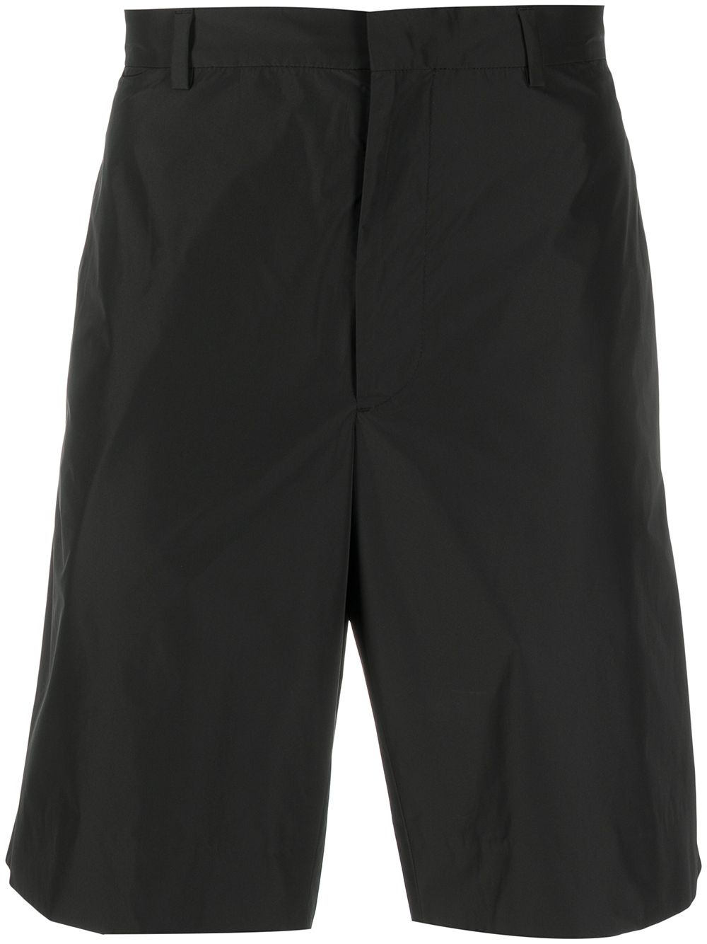 triangle patch logo shorts Shorts have been given a cool update thanks to Prada. Sleek as ever, this all-black pair is free from bells and whistles, proving that simplicity rules. School uniform, but make it fashion. Composition Lining: Cotton 100% Outer: Polyester 100% SIZE & FIT Model measurements Height 6 ft 2 in(1.87 m) Bust/Chest 37.79 in(96 cm) Hips 37.79 in(96 cm) Waist 30.31 in(77 cm) FittingInformation This piece fits true to size. We recommend you get your regular size Designed for a slim fit at the waist and loose over the leg Made with a lightweight non-stretch fabric