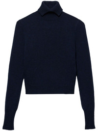 turtleneck cashmere sweater Highlights - Midnight blue - Cashmere - Fine knit - Triangle logo - Roll neck - Long sleeves - Ribbed trim - Straight hem Composition Cashmere 100%