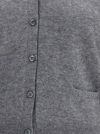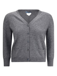 V-neck buttoned cardigan Highlights - Grey - V-neck - Button fastening - Long sleeves - Patch pockets - Ribbed hem Composition Cashmere 100% Washing instructions Read Manufacturer Guidelines