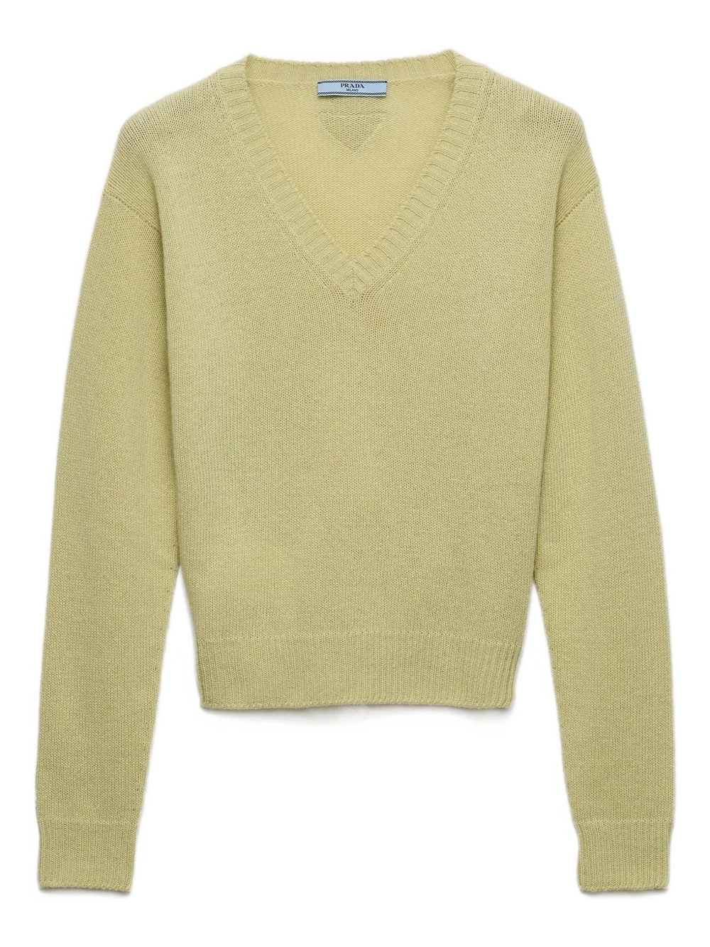 V-neck ribbed sweater Highlights - Green - Ribbed knit trim - Fabric triangle logo - V-neck Composition Wool 50%, Cashmere 50% Washing instructions Read Manufacturer Guidelines