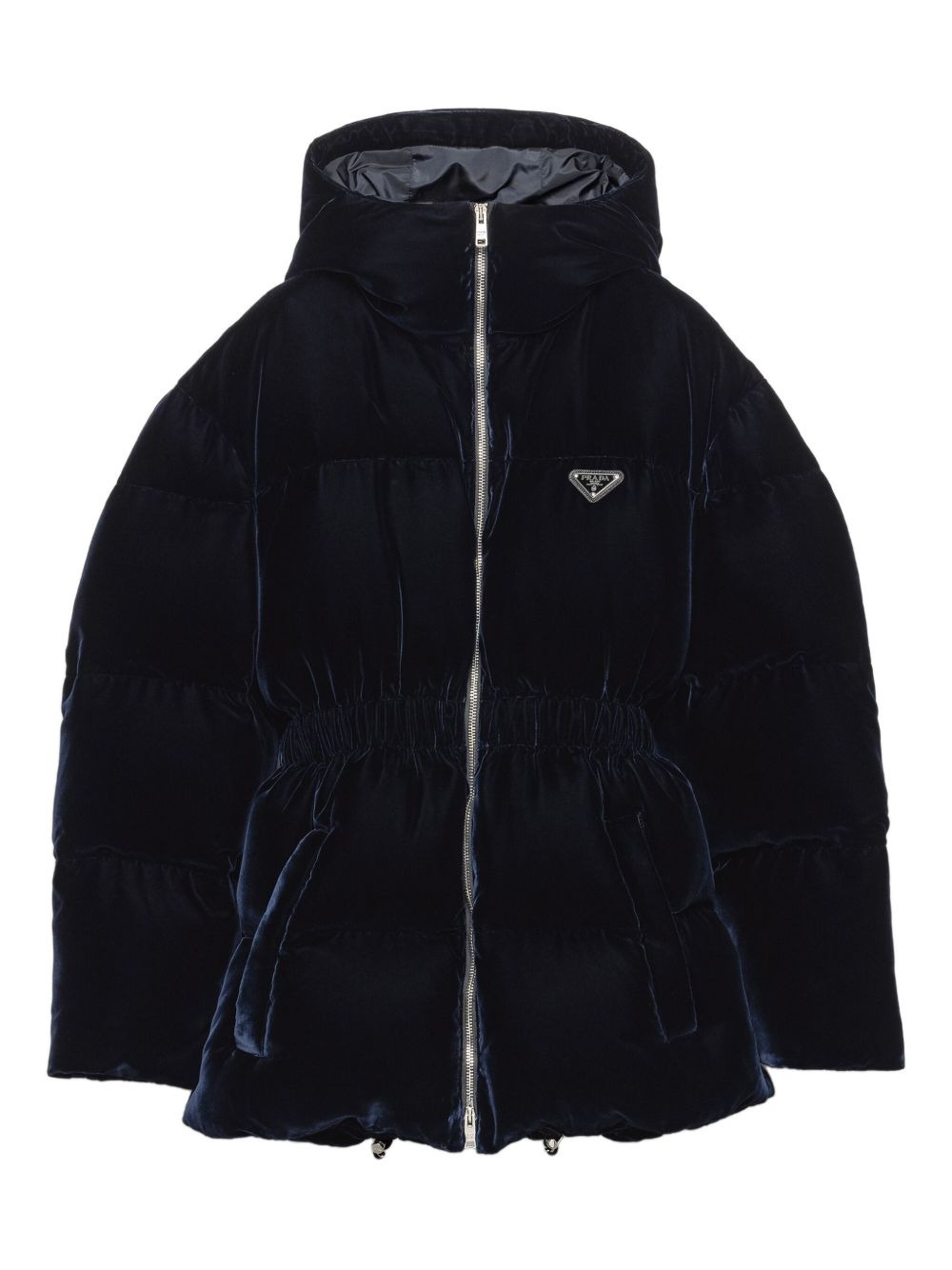 velvet hooded puffer jacket Highlights - Dark blue - Velvet texture - Goose down padding - Drawstring waist - Drawstring hood - Zip fastening - Welt pockets Composition Viscose 65%, Cupro 35% Washing instructions Read Manufacturer Guidelines