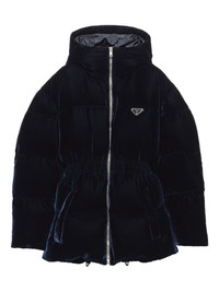 velvet hooded puffer jacket