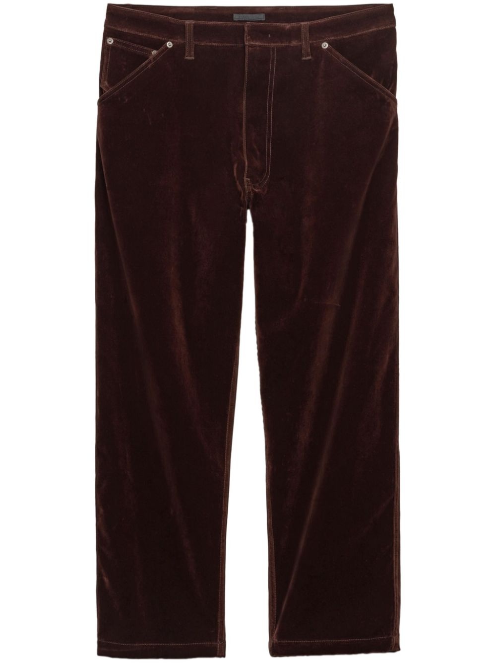 velvet trousers Highlights - Walnut brown - Concealed front fastening - Belt loops - Classic five pockets Composition Cotton 100% SIZE & FIT FittingInformation Designed for a tapered leg, offering a loose unrestricted fit over the leg with a closer fit towards the ankle Made from a midweight fabric