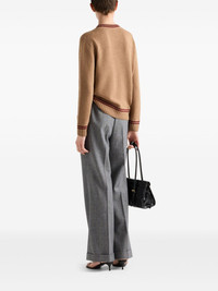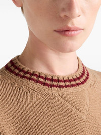 intarsia knitted-logo cashmere jumper Highlights - Beige/burgundy - Virgin wool-cashmere blend - Knitted construction - Intarsia-knit logo - Striped ribbed trim - Crew neck - Long sleeves - Straight hem Composition Wool 100%, Cashmere 100%
