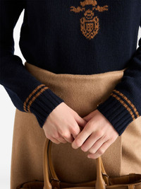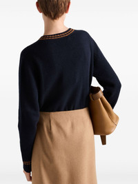 crew-neck cashmere jumper Highlights - Midnight blue - Virgin wool-cashmere blend - Knitted construction - Intarsia-knit logo - Stripe detailing - Ribbed trim - Crew neck - Long sleeves - Straight hem Composition Cashmere 100%