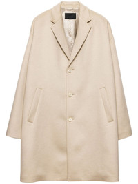 wool coat Highlights - Light beige - Wool - Front button fastening - Triangle logo - Notched lapels - Two side welt pockets - Long sleeves - Straight hem Composition Wool 100%