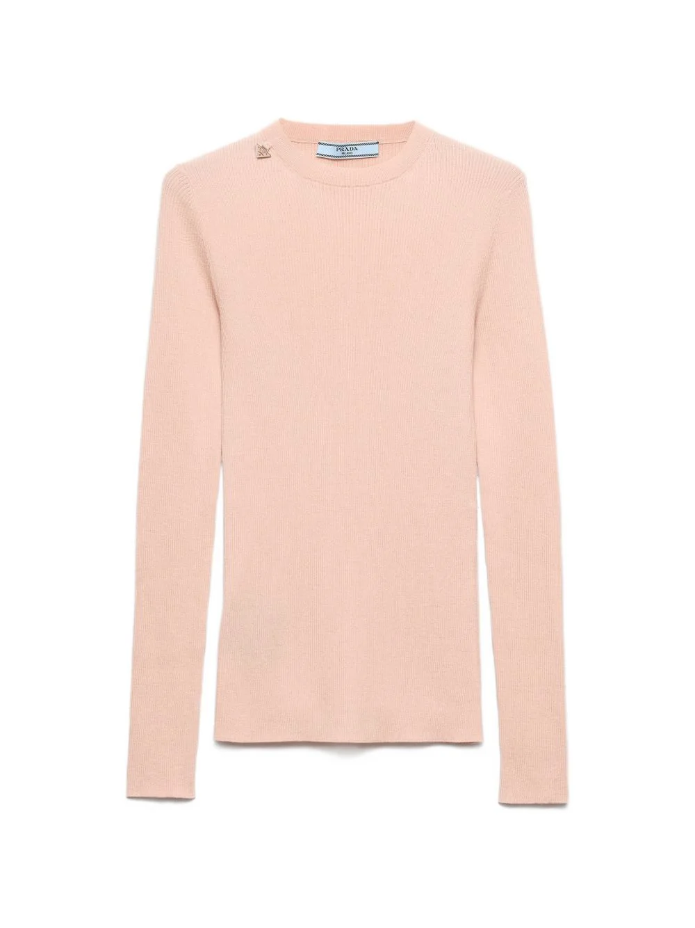 wool crew-neck sweater Highlights - This light sweater with a refined texture is made of ribbed knit wool. the versatile style with a slim fit is completed by the enameled metal triangle logo. - Long sleeves - Ribbed knit - Slim-fit silhouette - Crew neck - Semi-raglan shoulder - Enameled metal triangle logo - Imported - The model is 181 cm tall and wears a size 38 Composition Virgin Wool 100% Washing instructions Read Manufacturer Guidelines