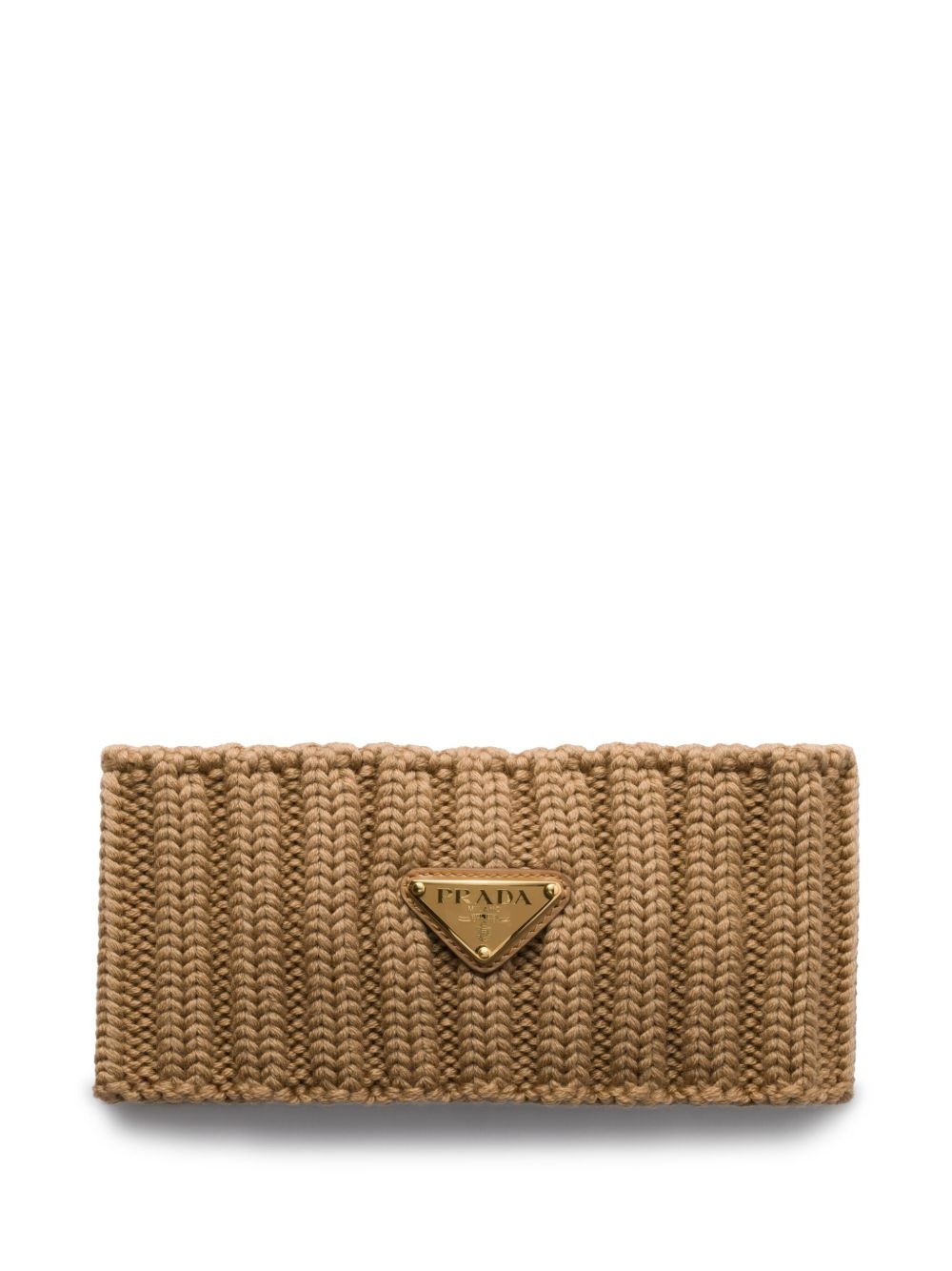 wool headband Highlights - Light brown - Slip-on style - Triangle logo - Ribbed knit Composition Metal 100%, Wool 100%
