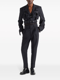 wool tailored trousers Highlights - Midnight blue - Wool - Pressed crease - Belt loops - Concealed front fastening - Two side slash pockets - Two rear welt pockets - Turn-up hem - Tapered leg Composition Wool 100% Washing instructions Read Manufacturer Guidelines