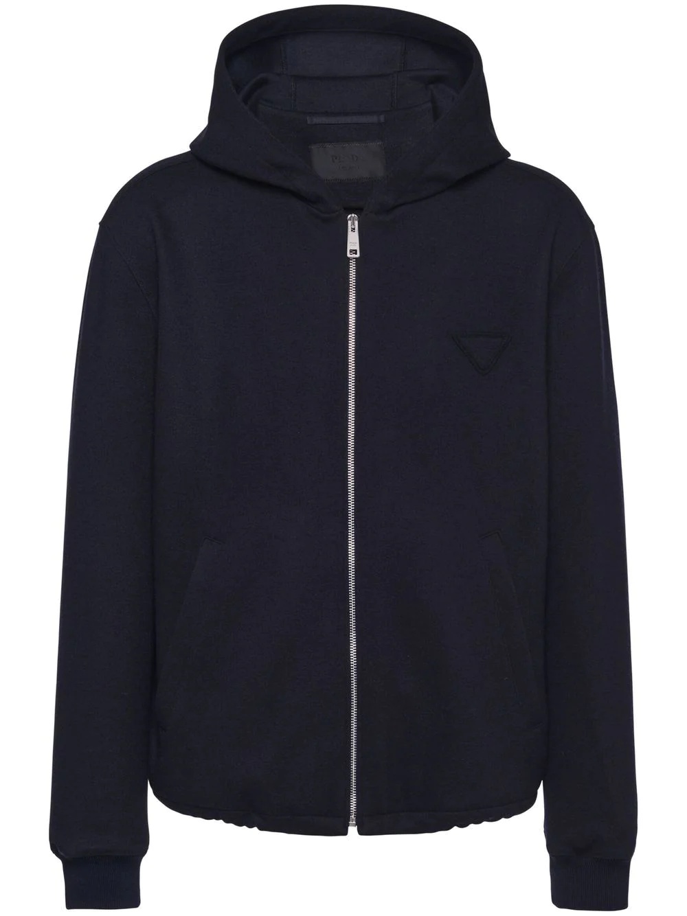 zip-front wool hoodie dark blue wool triangle logo classic hood front zip fastening long sleeves two side slit pockets elasticated cuffs straight hem Composition Wool 100%