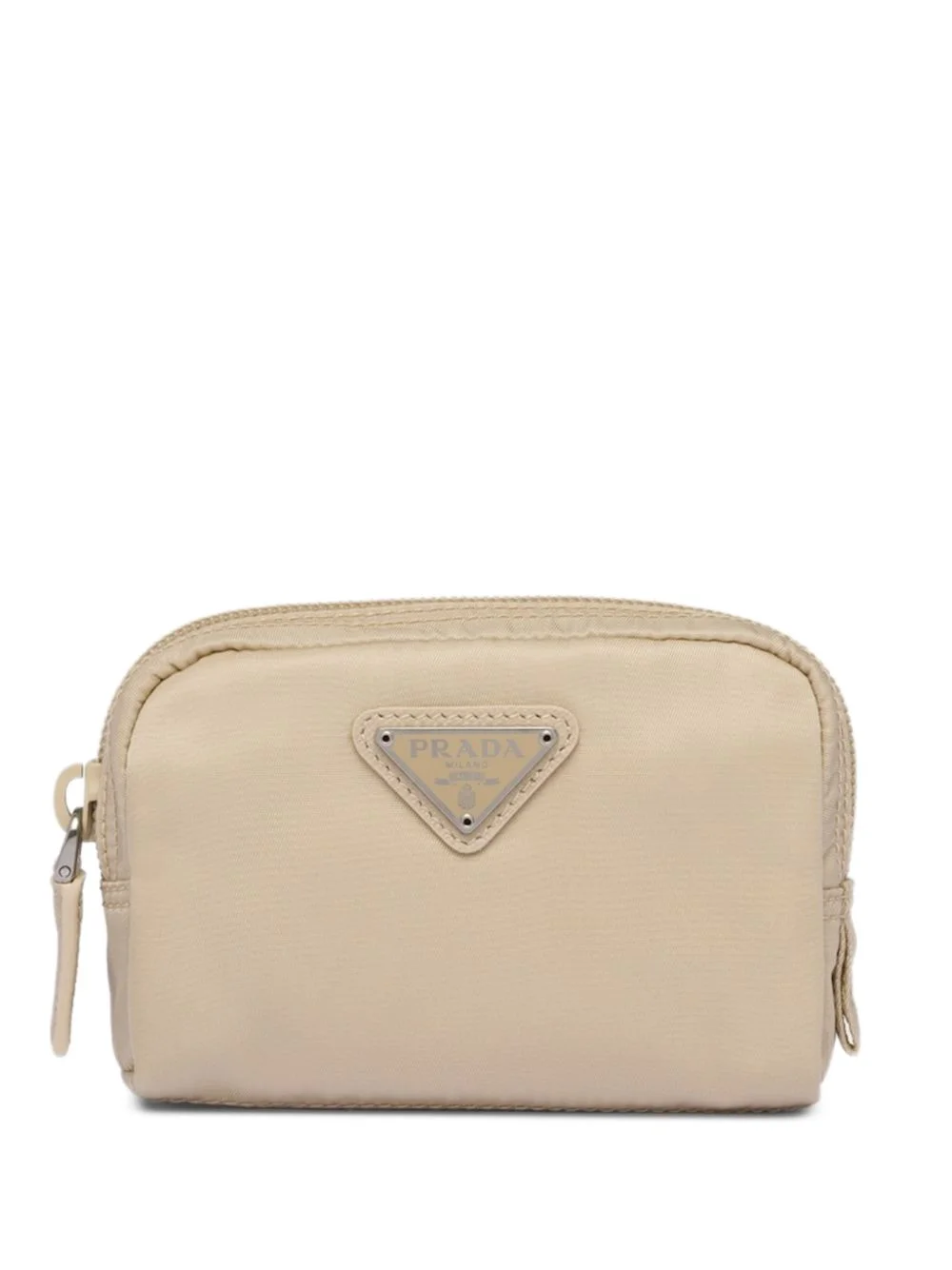 zip logo micro pouch Highlights - Neutral - Enamel metal triangle logo - Zip closure - Fabric - Internal zip pocket Composition Outer: Recycled Nylon 100% SIZE & FIT Measurement HEIGHT 3.14 in(8 cm) LENGTH 1.57 in(4 cm) WIDTH 4.92 in(12.5 cm)
