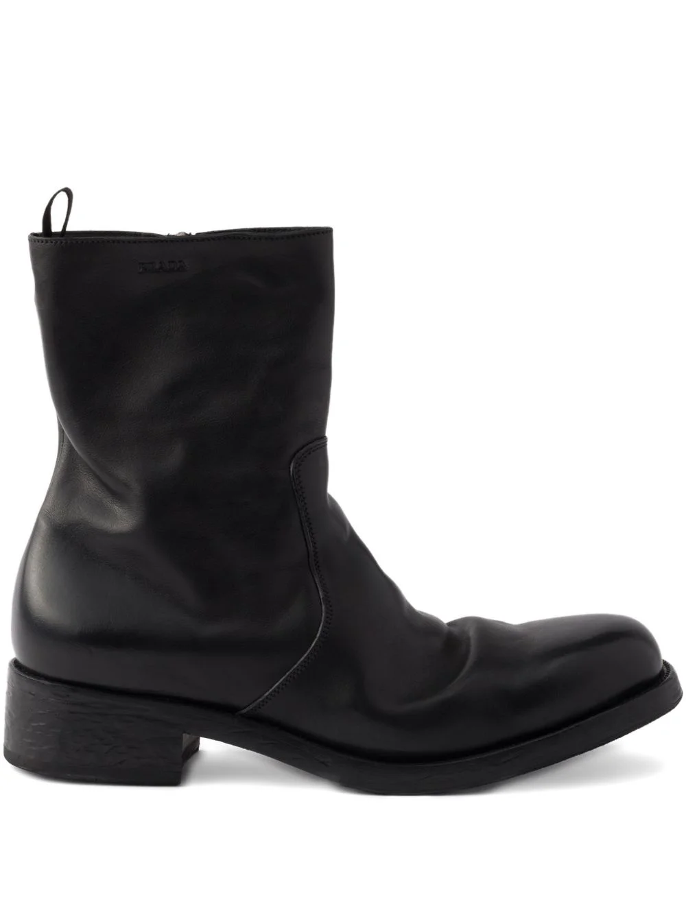 zipper leather boots Highlights - Black - Leather insole - Gold-tone embossed logo - Rubber half-sole Composition Sole: Rubber 100%, Calf Leather 100% Lining: Calf Leather 100% Outer: Calf Leather 100% SIZE & FIT Measurement HEEL 1.57 in(4 cm)