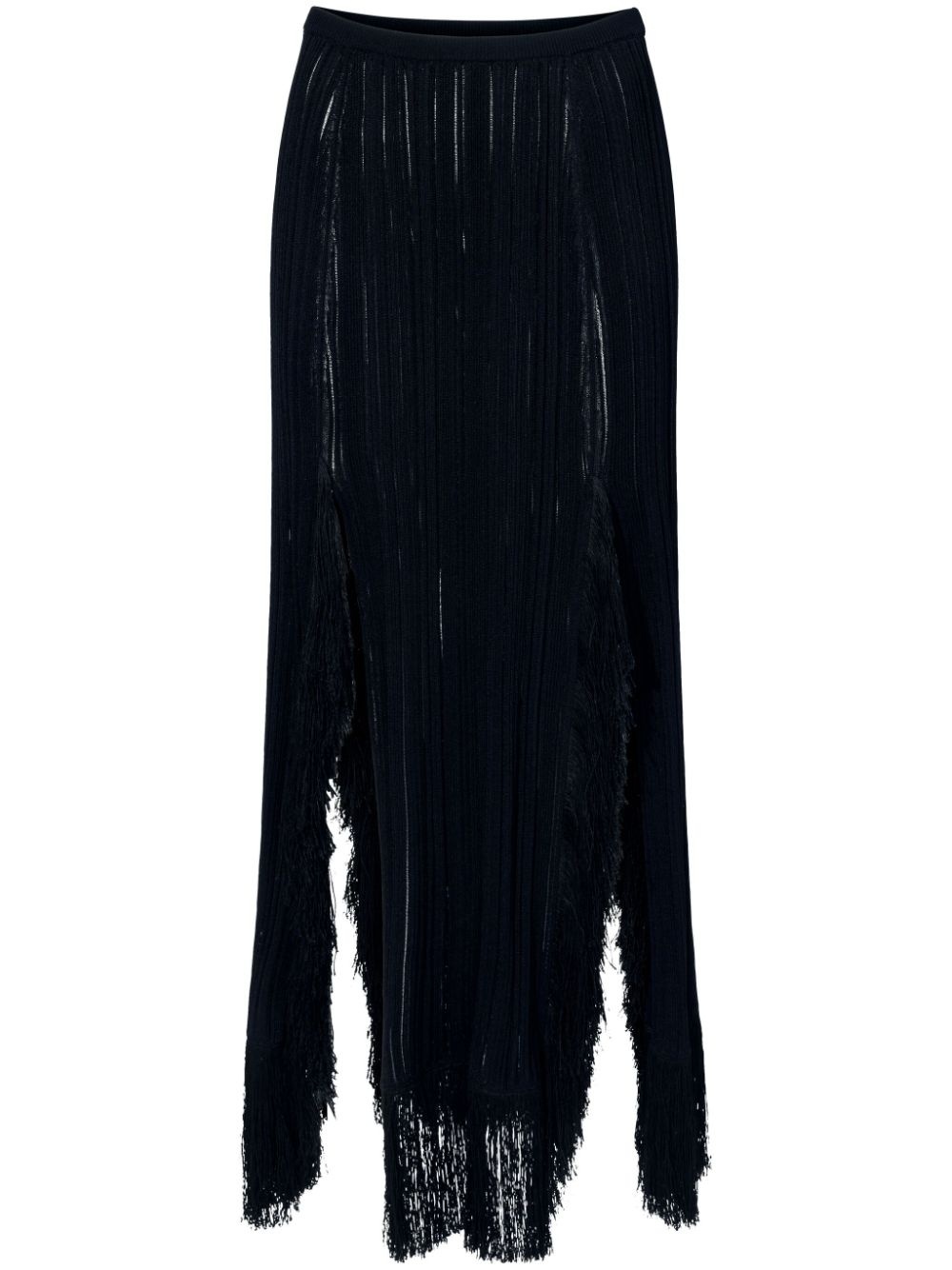 Alaina skirt Highlights - Black - Ribbed knit - Semi-sheer construction - Mid-rise - Side slits - Fringed edge - Ankle-length Imported Composition Viscose 83%, Cotton 9%, Polyamide 8%
