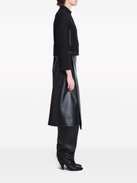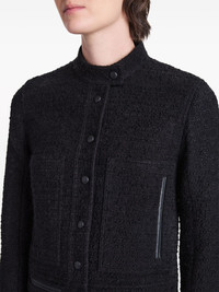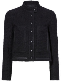 Alice press-stud tweed jacket Highlights - Black - Tweed - Faux-leather trim - Band collar - Front press-stud fastening - Long sleeves - Cuff zips - Two side welt pockets - Straight hem Imported Composition Acrylic 58%, Cotton 28%, Polyester 5%, Wool 4%, other fibers 3%, Polyamide 2% Washing instructions Read Manufacturer Guidelines
