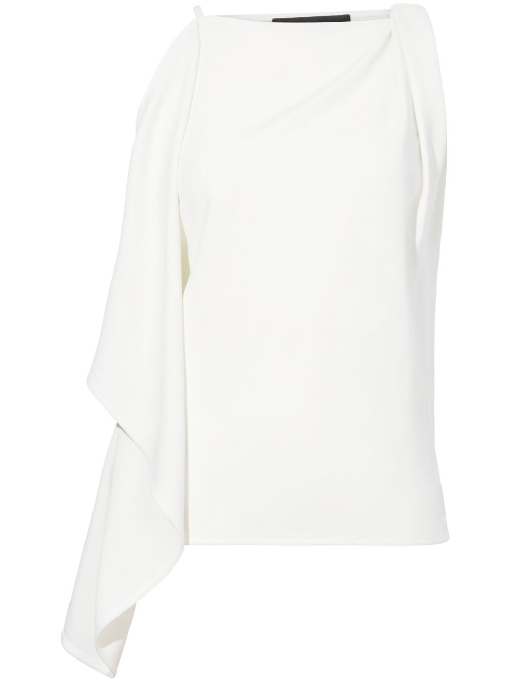 Alyssa top Highlights - Ivory white - Crepe texture - Draped detailing - Layered design - Asymmetric neck - Sleeveless - Straight hem Imported Composition Triacetate 70%, Polyester 30%