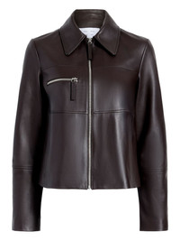 Annabel zip-front leather jacket Highlights - Dark brown - Lambskin leather - Zip fastening - Collared neckline - Welt pockets - Panelled design - Point collar Made in Italy Composition Lambskin 100% Washing instructions Read Manufacturer Guidelines