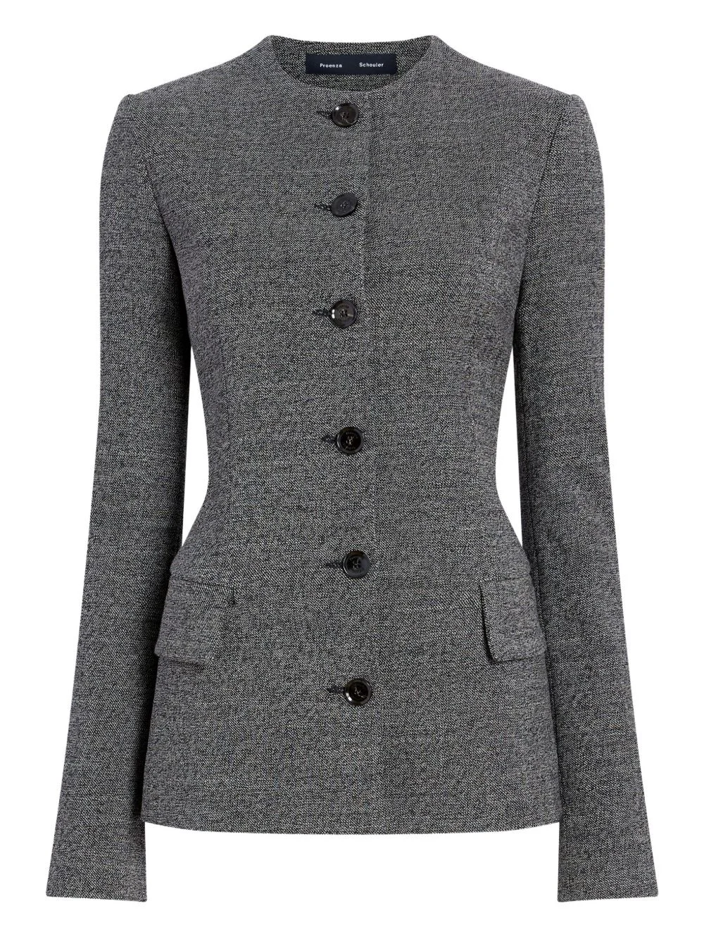 Annemarie button-fastening jacket Highlights - Grey - Wool - Button fastening - Front pockets - Round neck - Long sleeves Imported Composition Wool 99%, Elastane 1% Washing instructions Read Manufacturer Guidelines