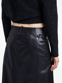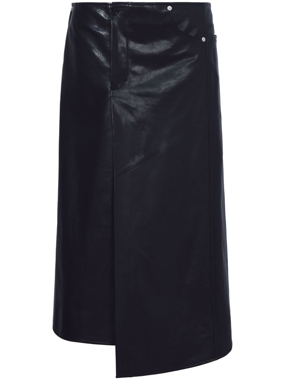 asymmetric A-line leather skirt Highlights - Black - Lambskin - Wrap design - Rivet detailing - A-line - Mid-rise - Belt loops - Off-centre front fastening - Two side inset pockets - Rear button-fastening jetted pocket - Asymmetric hem - Mid-length Imported Composition Lambskin 100% Washing instructions Read Manufacturer Guidelines