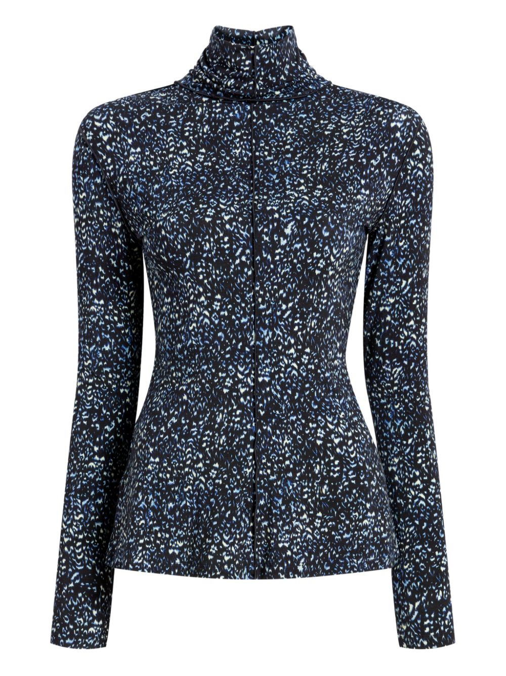 Audrey speckled turtleneck top Highlights - Blue - Speckled print - Turtleneck - Long sleeves - Straight hem Imported Composition Rayon 93%, Spandex/Elastane 7% Washing instructions Read Manufacturer Guidelines