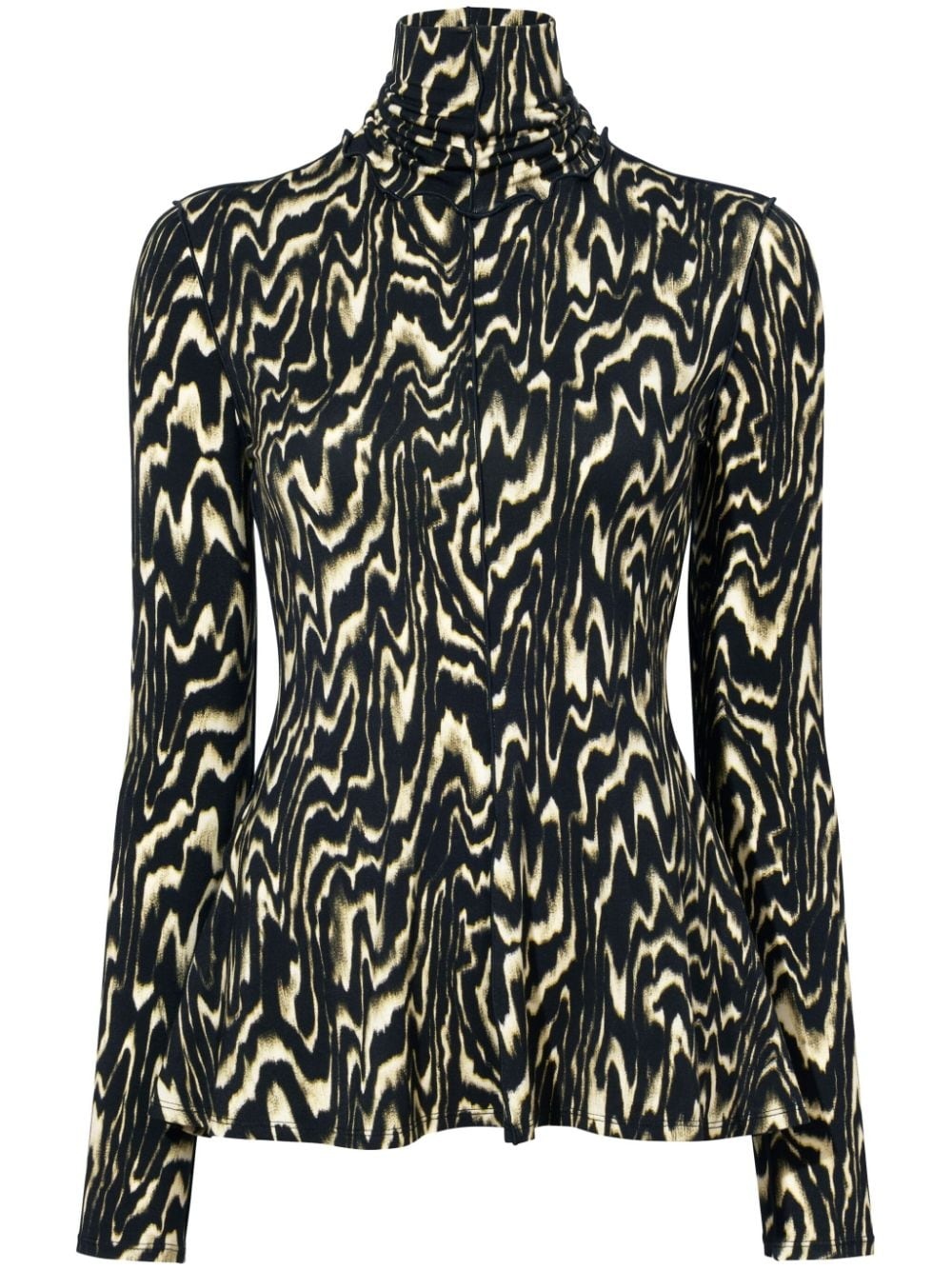 Audrey top Highlights - Black/green - Stretch-jersey - High neck - Abstract pattern print - Long sleeves - Vertical seamed - Straight hem Imported Composition Rayon 93%, Spandex/Elastane 7% Washing instructions Read Manufacturer Guidelines