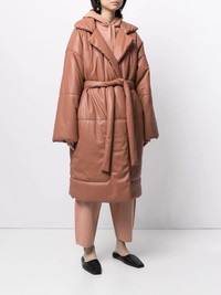 belted padded coat Cold grey mornings? They just got a silver lining. They're the perfect time to reach for this coat from Proenza Schouler White Label, boasting a padded design. Always look on the bright side of life. Highlights - Brown - Faux leather - Padded design - Wide notch lapels - Belt loops - Drop shoulder - Long sleeves - Mid-length Imported Composition Polyurethane 100% SIZE & FIT Model measurements Height 5 ft 9 in(1.76 m) Bust/Chest 32.28 in(82 cm) Hips 35.03 in(89 cm) Waist 23.62 in(60 cm) Washing instructions Dry Clean Only