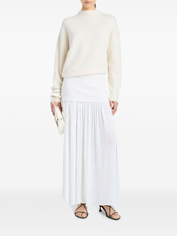 Bria sweater Highlights - Ivory white - Cashmere blend - Knitted construction - Mock neck - Drop shoulder - Long sleeves - V-back - Ribbed trim - Straight hem Imported Composition Cashmere 71%, Silk 24%, Nylon 4%, Spandex/Elastane 1%