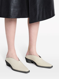 Bronco leather mules Highlights - Cream white - Calf leather - Smooth grain - Square toe - Slip-on style - Block heel - Branded leather insole - Rubber outsole Made in Italy Composition Leather 100%