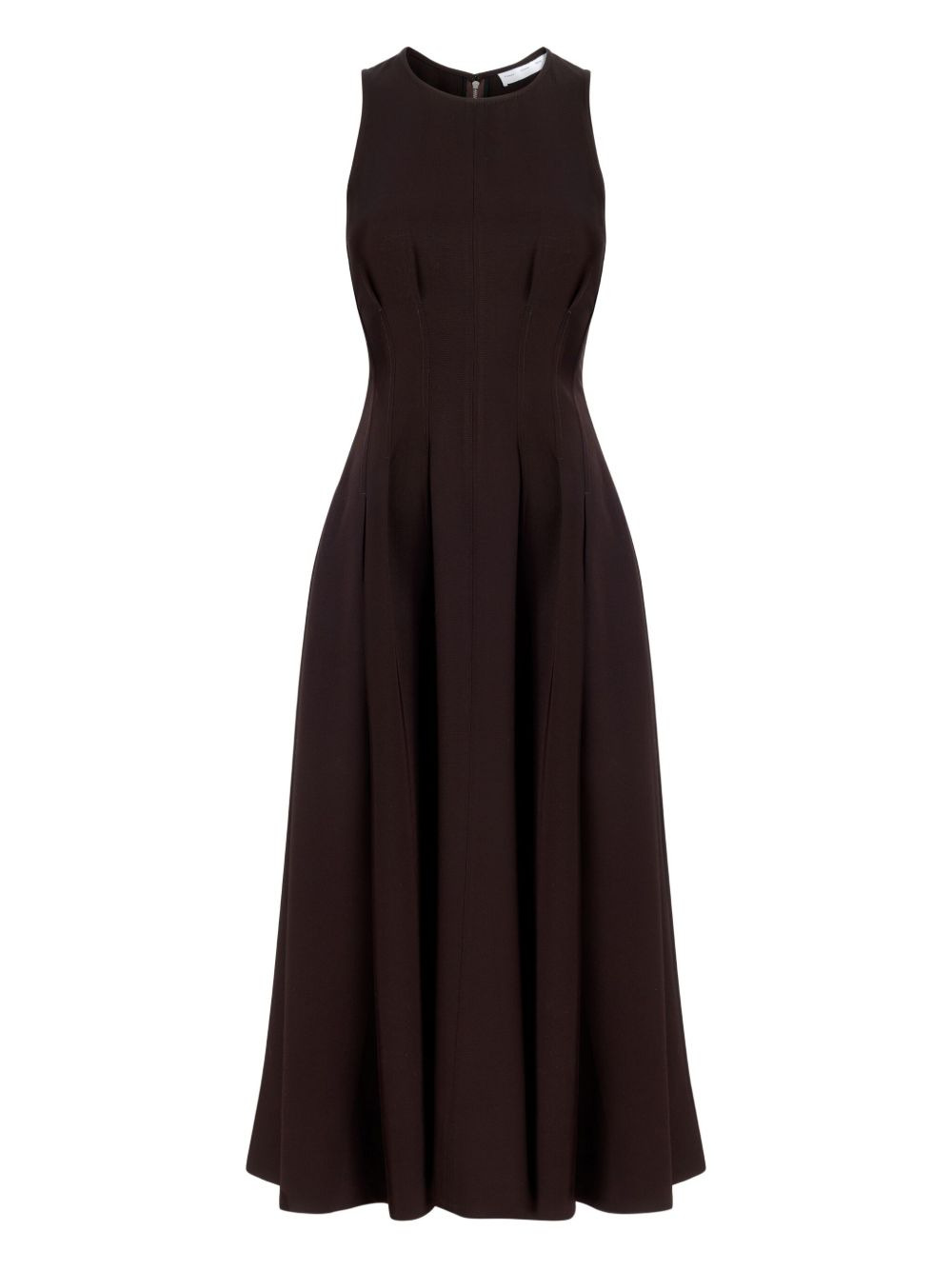 Bronwyn pleated fitted-bodice midi dress Highlights - Brown - Sleeveless design - Fitted bodice - Pleated skirt Imported Composition Acetate 82%, Wool 18% Washing instructions Read Manufacturer Guidelines