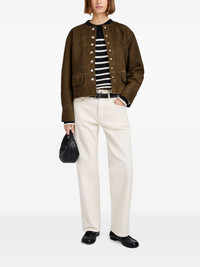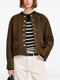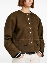 button-front suede jacket Highlights - Brown - Button fastening - Two front pockets - Crew neck - Long sleeves - Tonal stitching Imported Composition Lamb Suede 100% Washing instructions Specialist Cleaning