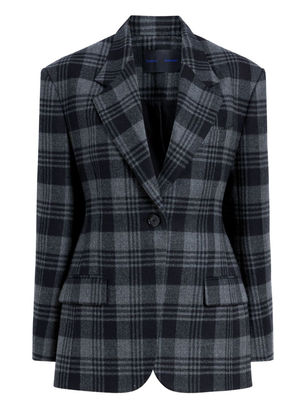checked wool blazer Highlights - Dark grey - Wool material - Single button fastening - Plaid pattern - Notched lapels Made in Italy Composition Virgin Wool 100% Washing instructions Read Manufacturer Guidelines