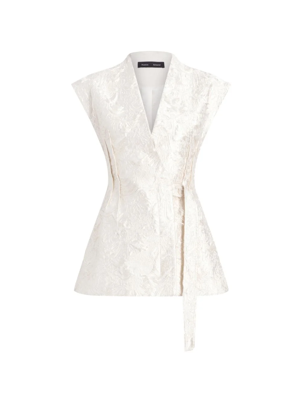 Cindle jacquard belted gilet Highlights - Off white - Floral print - V-neck - Sleeveless - Wrap design Made in Italy Composition Viscose 71%, Silk 13%, Polyester 10%, Polyamide 5%, Elastane 1% Washing instructions Dry Clean Only