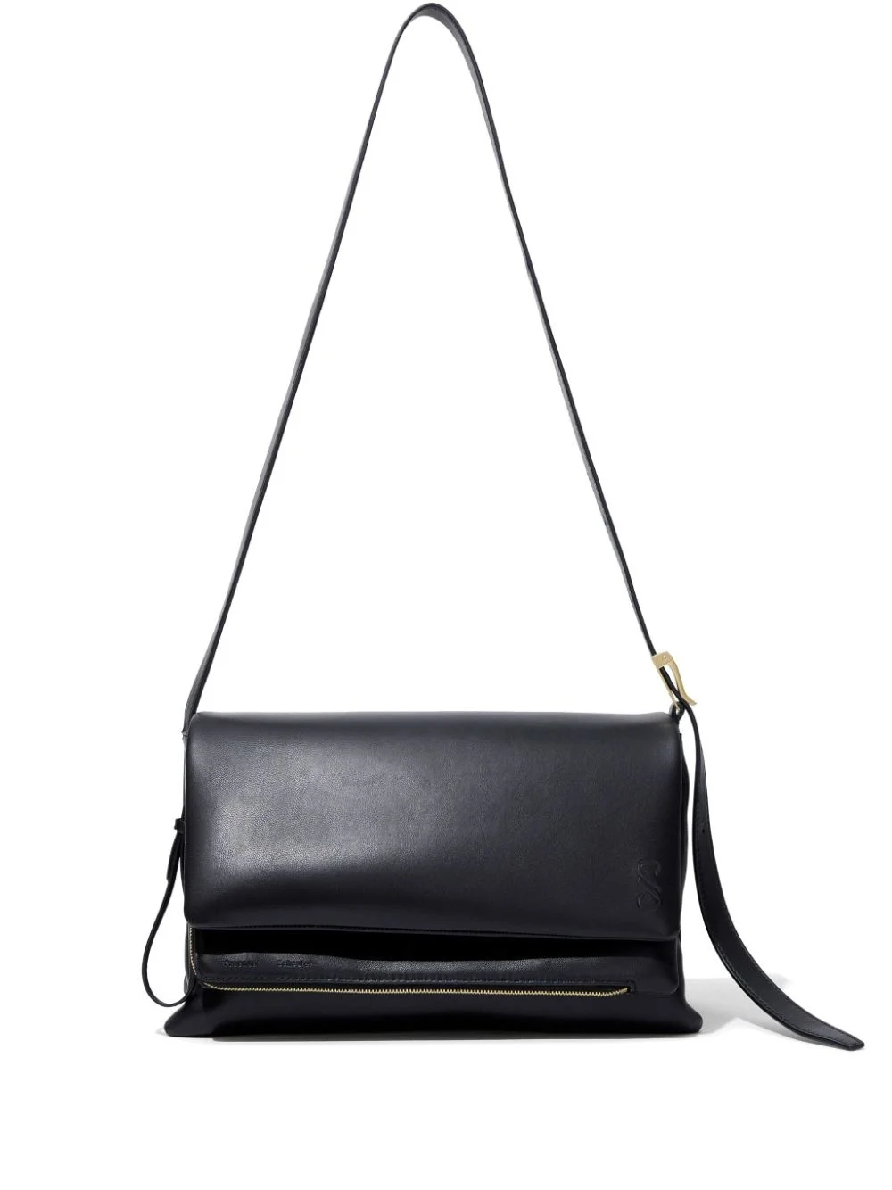 City leather shoulder bag Highlights - Black - Leather - Adjustable shoulder strap - Foldover top - Main compartment Made in Italy Composition Outer: Lamb Skin 100% SIZE & FIT Measurement DEPTH 5.11 in(13 cm) HEIGHT 6.88 in(17.5 cm) WIDTH 10.62 in(27 cm)