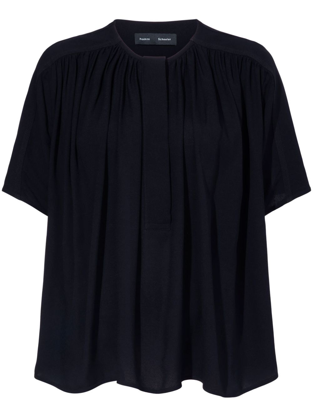Claire top Highlights - Black - Georgette crepe - Lightweight - Concealed short front button fastening - Crew neck - Short sleeves - Flared hem Imported Composition Viscose 100% Washing instructions Dry Clean Only