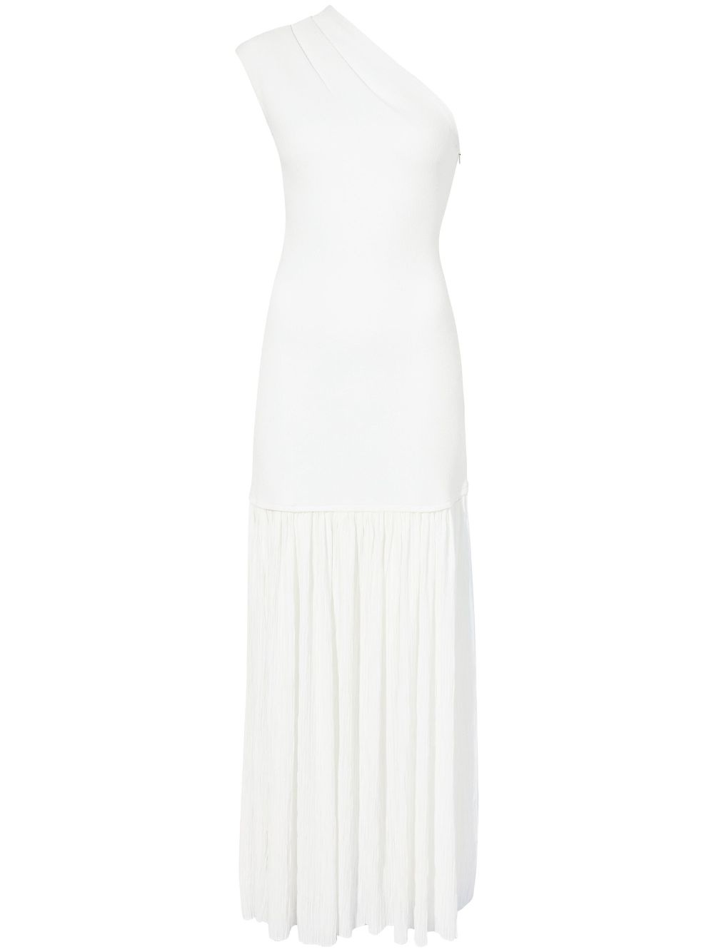 Cora dress Highlights - White - Off-shoulder - Sleeveless - Pleated skirt - Long length - Straight hem Imported Composition Polyester 100% Washing instructions Read Manufacturer Guidelines