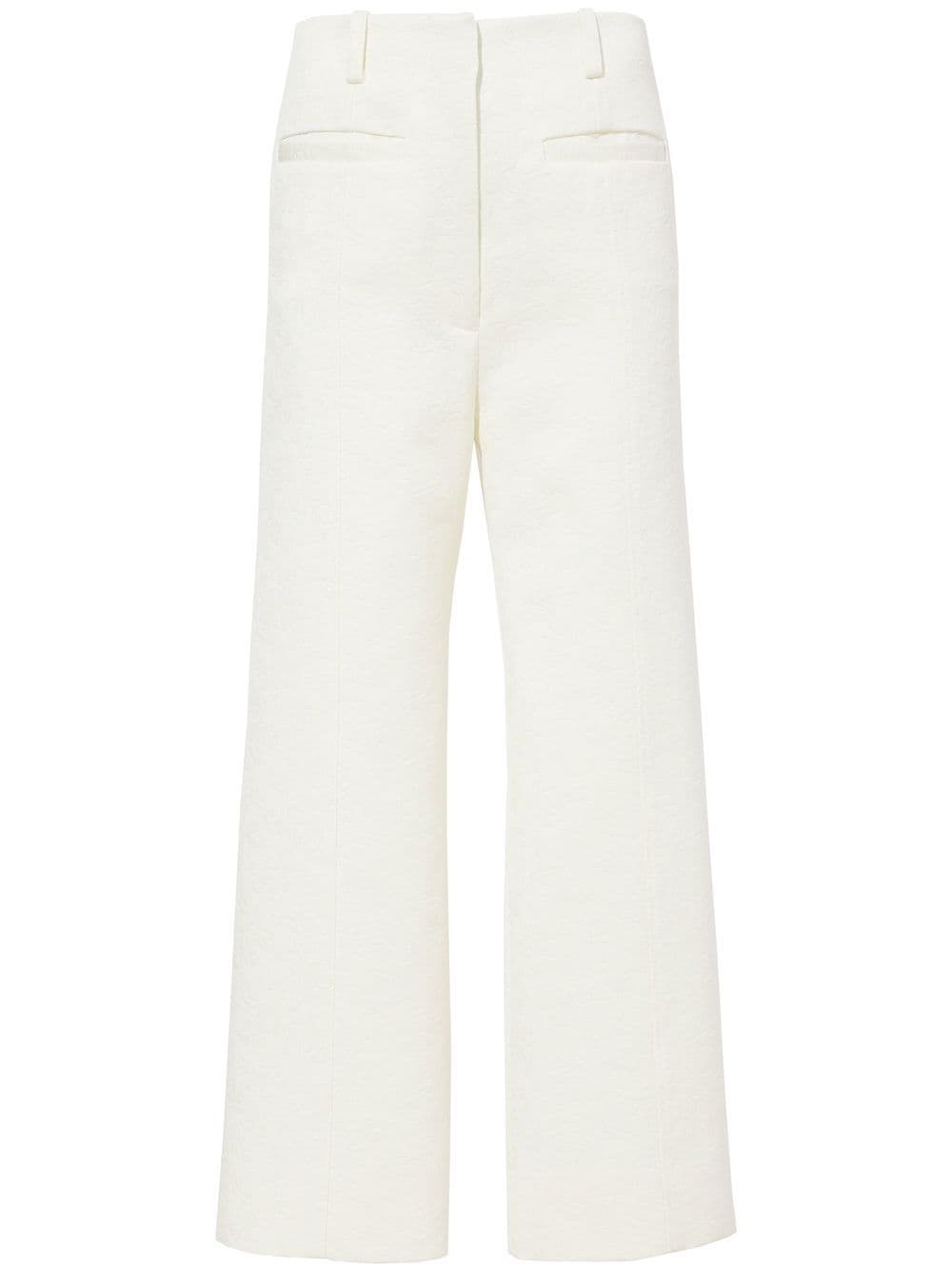 cotton wool jacquard trousers canvas white cotton-wool blend patterned jacquard belt loops two front welt pockets straight leg Imported Composition Cotton 71%, Wool 29%