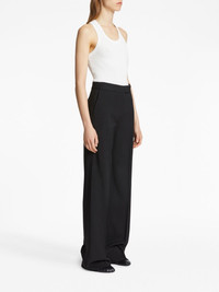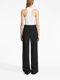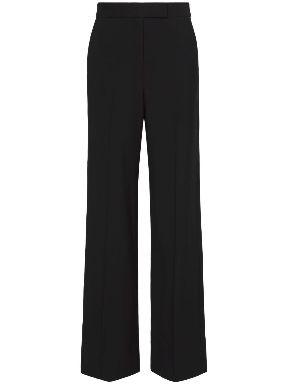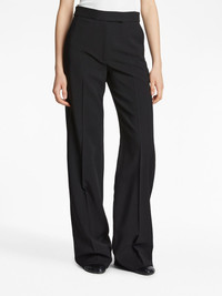 crepe pressed-crease tailored trousers Proenza Schouler's trousers honour classic suiting. Cut from crepe woven with a touch of stretch, the relaxed straight-leg silhouette is defined by pressed creases at the front. Highlights - Black - Crepe texture - Pressed crease - Concealed front fastening - Two side slash pockets - Two rear welt pockets - Straight leg - Extra-long length Imported Composition Viscose 97%, Elastane 3%