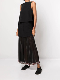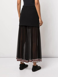 crochet-trim chiffon panel skirt Subtle hues make a repeated appearance throughout Proenza Schouler’s collections, allowing the brand’s distinctive detailing to pop out against neutral backgrounds. That’s the case with this long skirt, presented in classic black and accented with colourful pom pom detailing to the hem. Imported Composition Outer: Silk 100%, Virgin Wool 91%, Spandex/Elastane 5%, Polyamide 4% Lining: Silk 100% SIZE & FIT Model measurements Height 5 ft 10 in(1.77 m) Bust/Chest 31.88 in(81 cm) Hips 34.64 in(88 cm) Waist 24.01 in(61 cm)