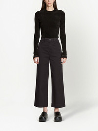 cropped cotton twill culottes Highlights - Black - Stretch-cotton - Twill weave - Logo patch to the rear - Belt loops - High waist - Wide leg - Front button and zip fastening - Two side slash pockets - Two rear patch pockets - Cropped Imported Composition Cotton 97%, Spandex/Elastane 3% Washing instructions Dry Clean Only