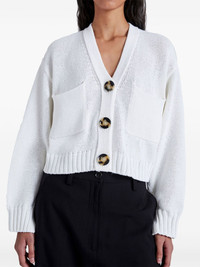 cropped knit cardigan Highlights - White - Cotton blend - V-neck - Front button fastening - Two front patch pockets - Drop shoulder - Long sleeves - Ribbed cuffs and hem - Cropped - Straight hem Imported Composition Cotton 92%, Nylon 8%