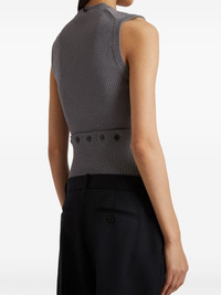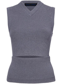 Cruz top Highlights - Medium grey - Ribbed knit - V-neck - Sleeveless - Cut-out detailing - Decorative button detailing - Straight hem Imported Composition Viscose 55%, Wool 37%, Polyester 8%