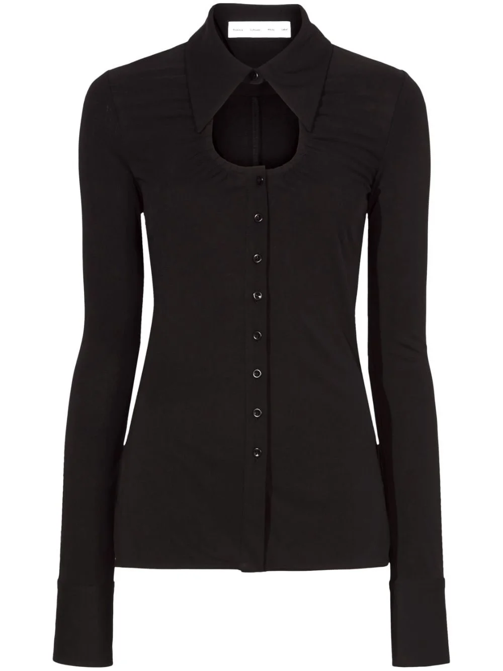 cut-out detail shirt Highlights - Black - Cut-out detailing - Ruched detailing - Oversized pointed collar - Front button fastening - Long sleeves - Buttoned cuffs - Straight hem Imported Composition Viscose 100%